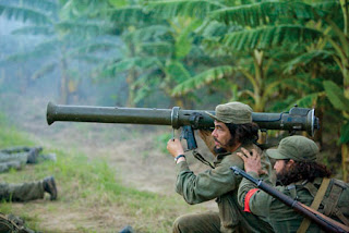 que la emoción empape los hechos más dramáticos en los que se ven envueltos. Arrimados hombros y fusiles, solapados ideales, quimeras y entusiasmo sin concesiones, la aventura guerrillera se estanca en la descripción exhaustiva con voz en off de Guevara ilustrando reflexiones morales, éticas e ideológicas del conflicto, su miedo, su coraje, su fé. Queda claro el mensaje de dignidad, tan bello, tan poético, tan necesitado de un aliento dramático que la profesional mano de Soderbergh se ve incapaz de plasmar. Me cuentan que el segundo segmento de la obra acentúa las tribulaciones existenciales del Che, aquí esbozadas en estos parlamentos internos. Ignoro si ni siquiera verá la luz comercial, a la vista del primer bocado al bolsillo del populacho nostálgico de viejas y necesarias luchas. Es de suponer que también prevalecerá una épica de diseño armada con la afilada sintaxis propia del director y una rugosa apuesta estética,