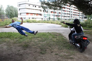 tal vez en la reciente TROPA DE ÉLITE (José Padilha, 2008)- surgen los esquinazos más siniestros de la vida desnudos de esplendores para que bebamos sus chorros. La cámara de Garrone se acerca a las piezas de este tapiz humano, respira su aliento entrecortado a balazos, nos contagia la amenaza constante y logra impregnar de autenticidad los recursos para sobrevivir al caos. Asistimos atónitos al dibujo de ambientes y situaciones a trazos sucios, los únicos válidos a la hora de describir el día a día en el fango.
