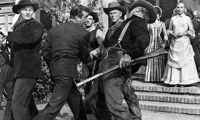 En Silver Lode parece imposible que el acorralado Payne salga con vida. Sólo su flamante esposa cree en él, aunque con momentos de duda; como la Grace Kelly de Solo ante el peligro. También, como ella, Liz Scott será decisiva para la resolución de la película. Un final estupendo, donde el protagonista acude al edificio de la iglesia como única salvación posible. Dwan coloca otra metáfora. Esta vez evidente, pero espectacular en su ejecución.